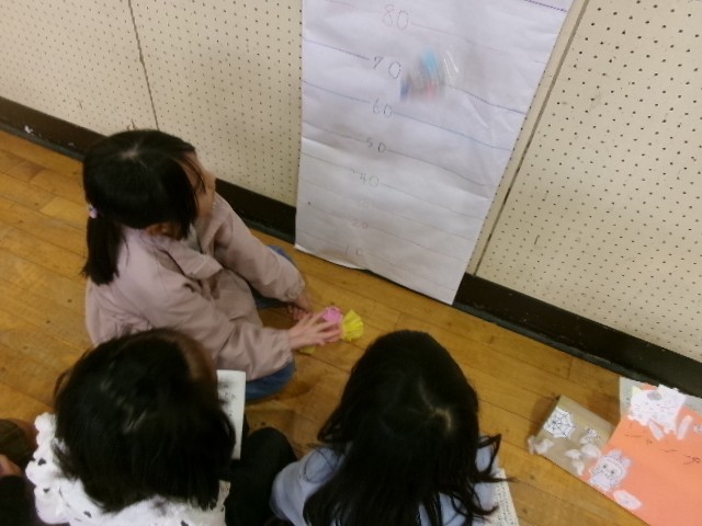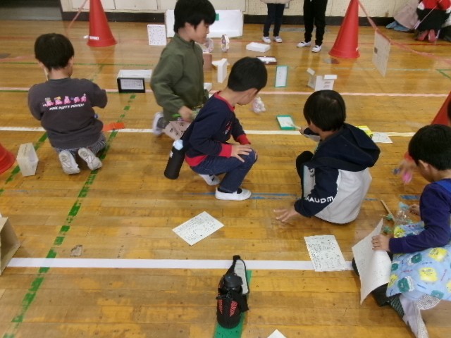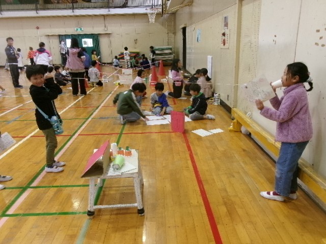 出来上がったおもちゃで自分たちでも楽しみましたが、1年生を招待して一緒に楽しむ子ことに…。