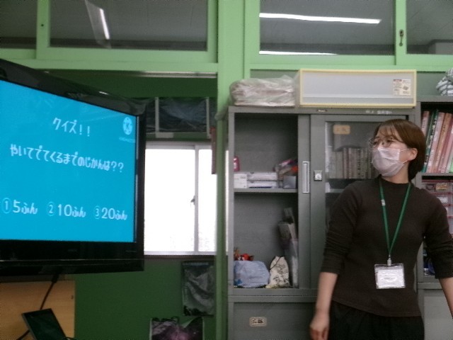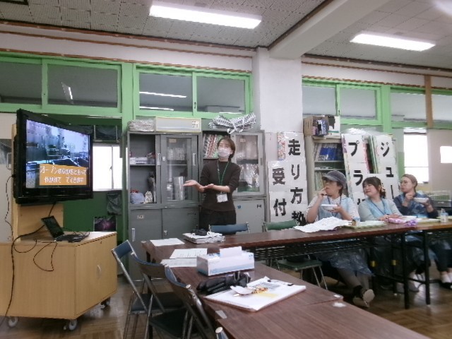 調理場の調理している様子や片付けている様子を撮影した動画を視聴していただき、栄養士から給食についての説明させていただきました。