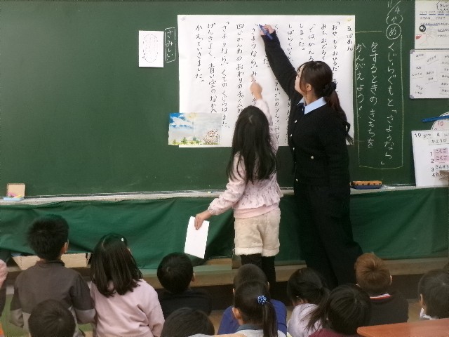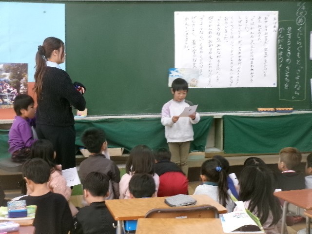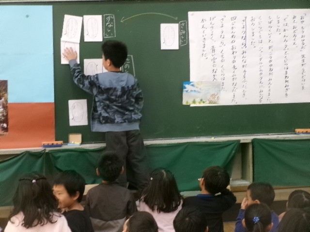 第4場面でのセリフを考え、みんなの前で発表してきた子供たち。