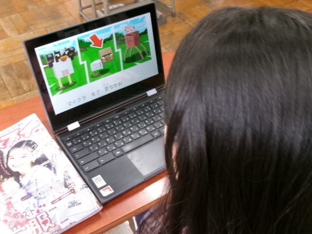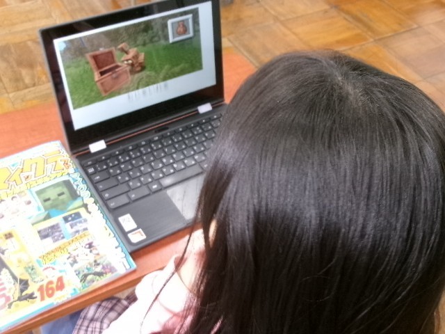 マインクラフトが大好きな子は、Chromebookでスライドにまとめ、どんなキャラクターがいるのかを丁寧に伝えていました。