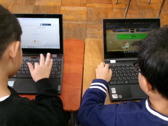 友達の影響で、最近、タイピングに熱中している子が二人!