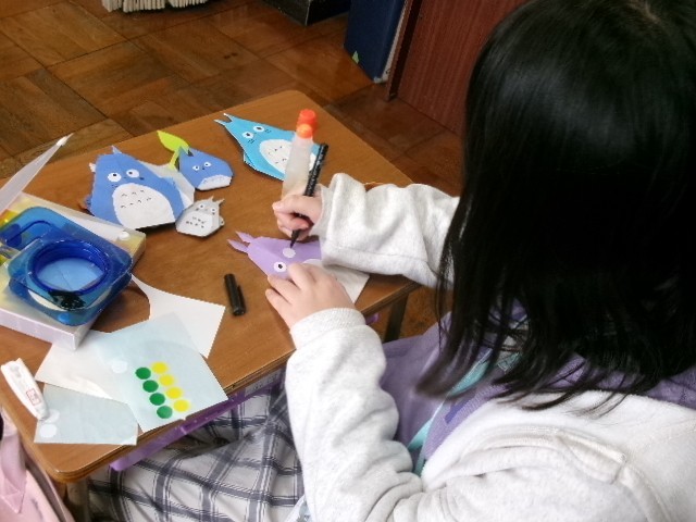 いろいろな大きさのトトロを丁寧に作りながら、目の描き方を変えることでいろいろな表情のトトロを作っていました。