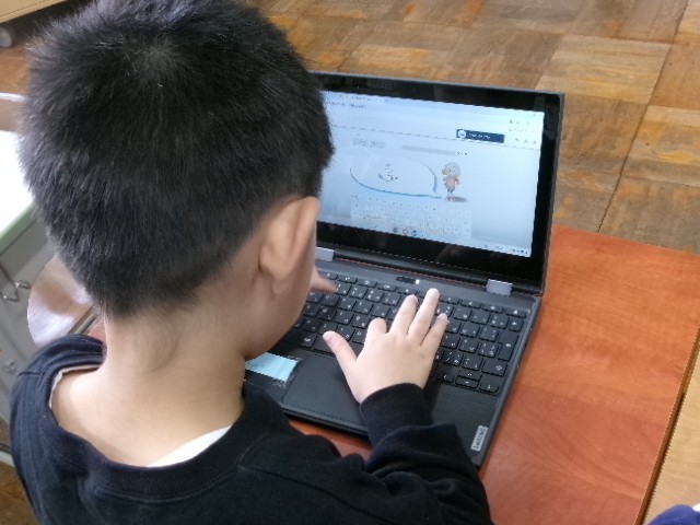 Chromebookの画面に現れる文字を見て、キーボードでその文字をどんどん打っていきます。