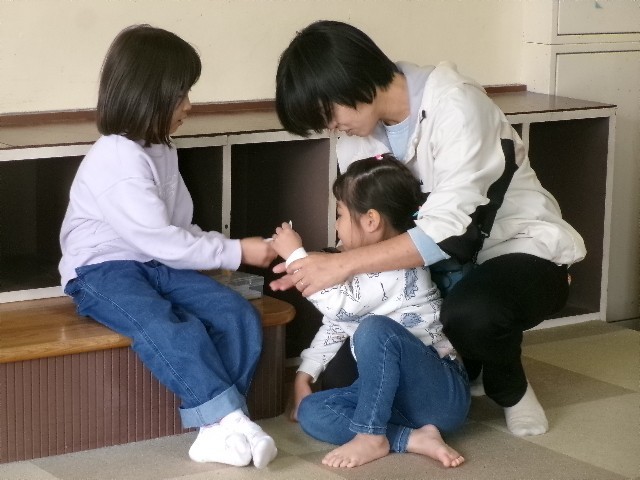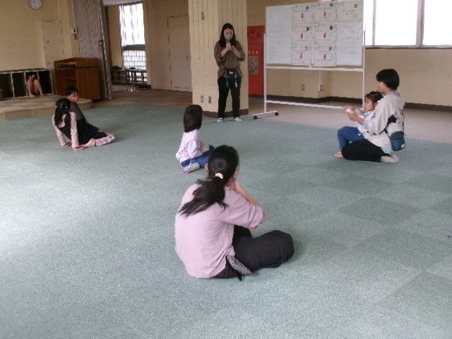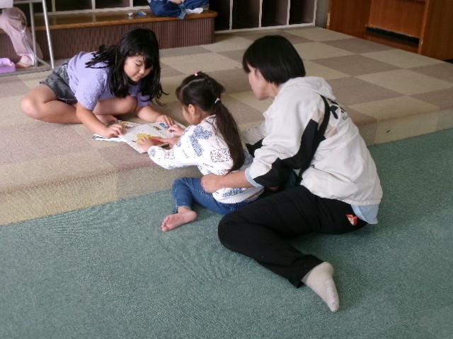 その後、アスレチック組は準備をし、その間、読み聞かせをしている子たち。