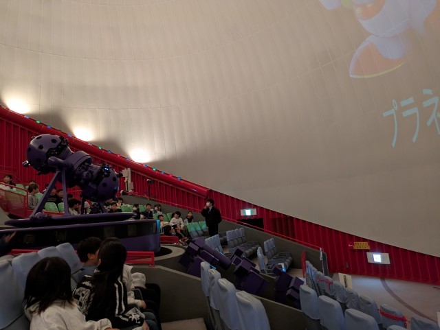 到着してすぐ、プラネタリウムを鑑賞しました。まず、今日の夜に見える星空を鑑賞しました。