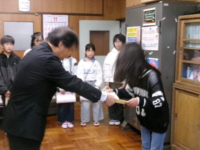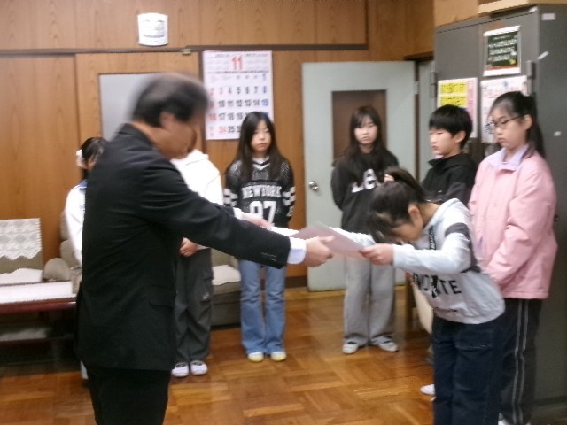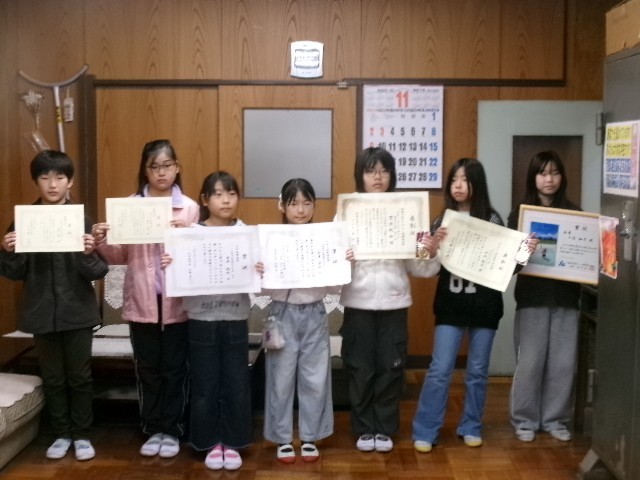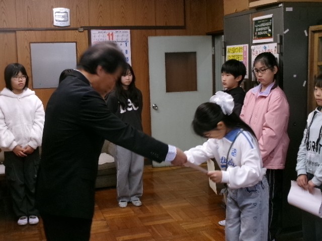 夏休みのコンクールなどで金賞や特別賞などに入賞した子の表彰です。