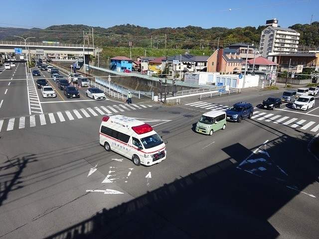 車が走っている様子を眺めていると、工事車両や救急車など、たくさんの種類の自動車を見ることができました。