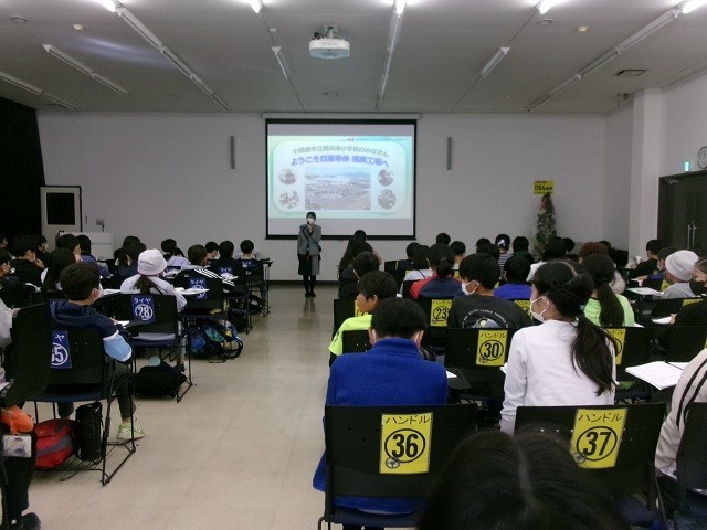 まずはゲストホールで、日産車体や自動車づくりについてスライドを使った説明、ビデオの上映がありました。