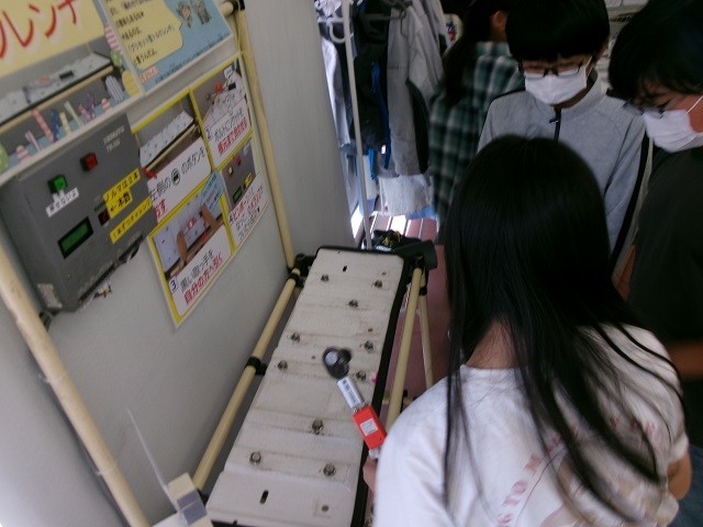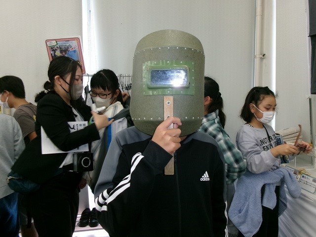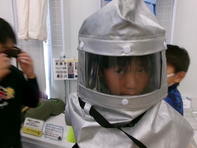 わくわくコーナーでは、工場で使用している保護具に触れることもできます。