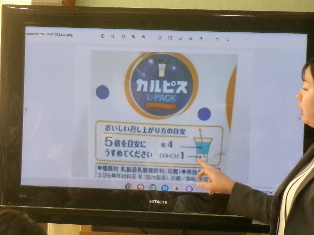 本時では、「おいしいカルピスをたくさん作るためにはどうしたらよいのか」を考えました。