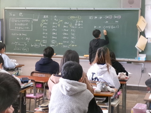 難しい「比」の問題にも、カルピスを作ることをイメージすることで、身近に感じながら取り組んでいました。