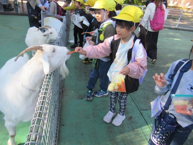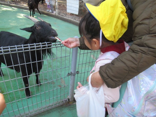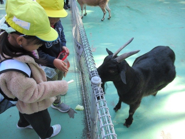 「黒やぎ」「白やぎ」…餌をやりながら、いろいろな動物と触れ合うことができます。