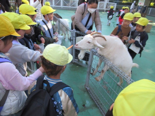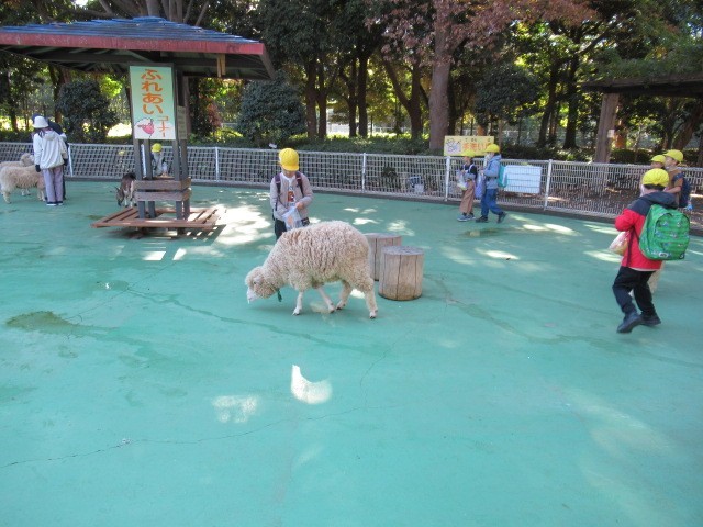 公園内にある「ふれあい動物園」で、動物と触れ合いました。