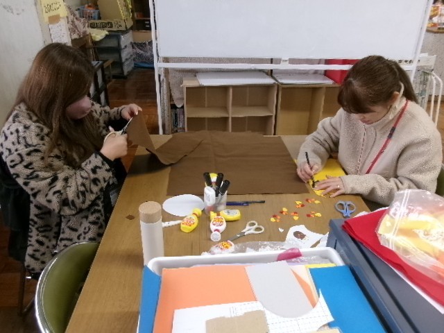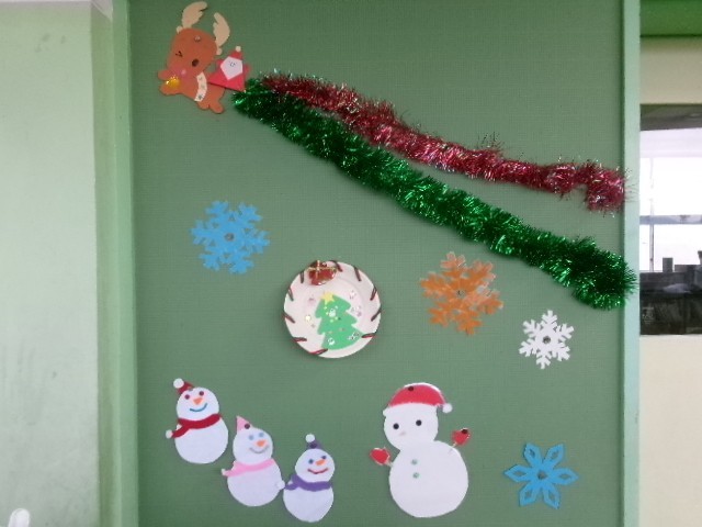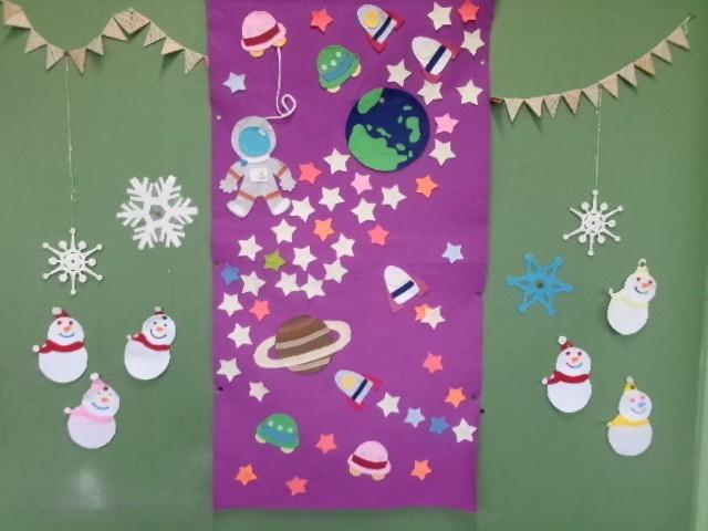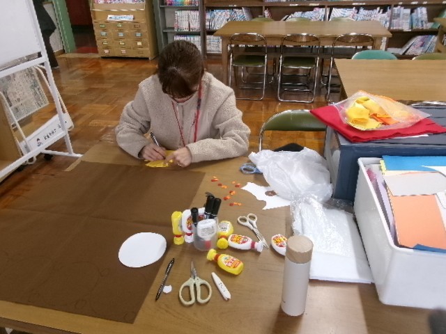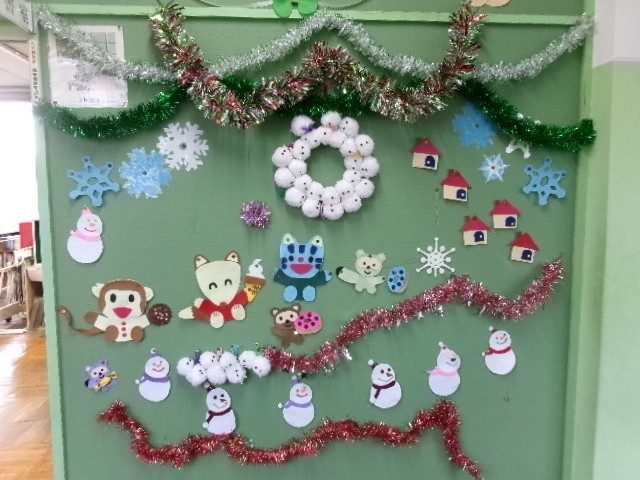 低学年図書室・南館の図書室、それぞれの壁面に、季節に合った飾り付けをしてくださっています。