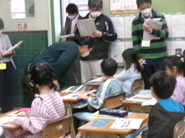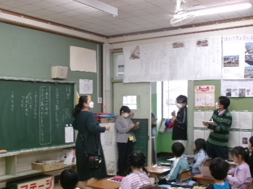 「『しごと』や『つくり』が書いてあるところを色塗りすると分かりやすいよ。」というある子の発言を受けて、「しごと」や「つくり」が書いてあると思われるところに色を付けていく子たち。
