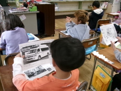 本時では、すでに決めていた自動車のことが書かれている資料が一人一人に配られました。