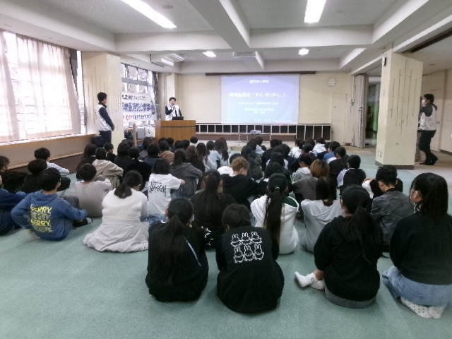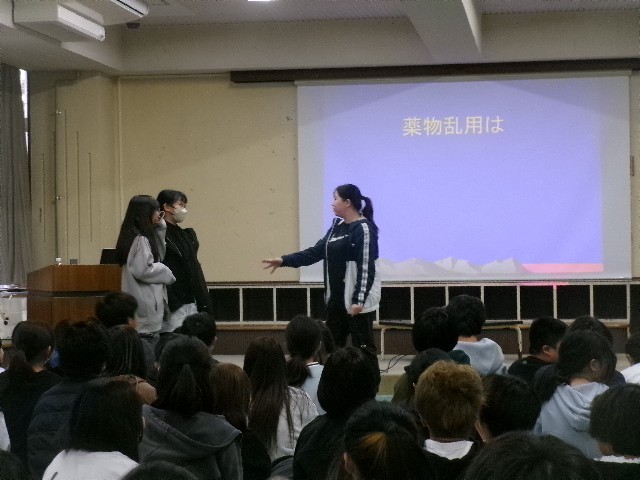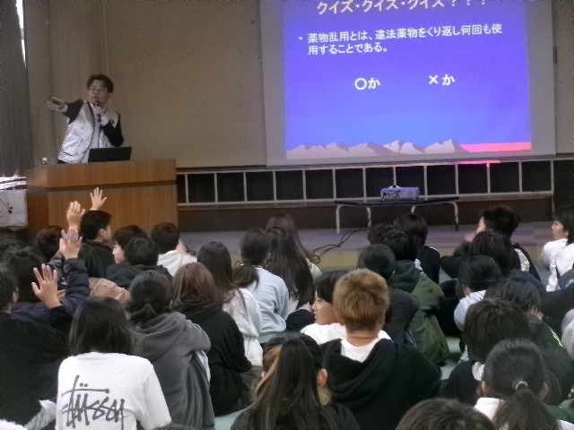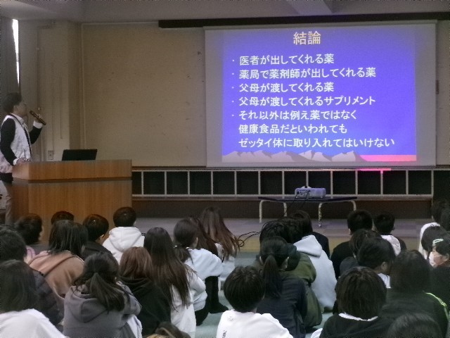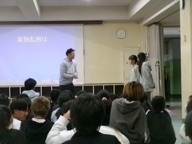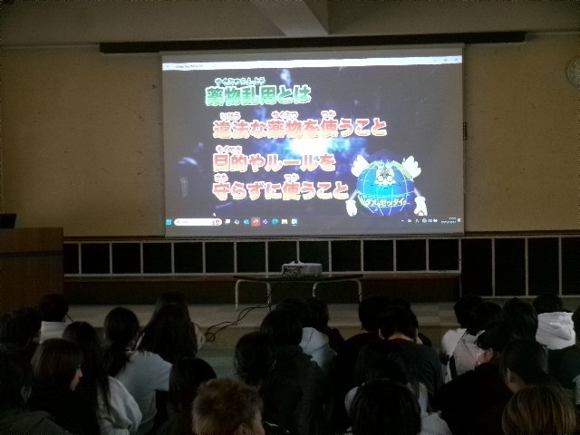 27日(木)第5校時、多目的ホールで薬物乱用防止教室が開かれました。
