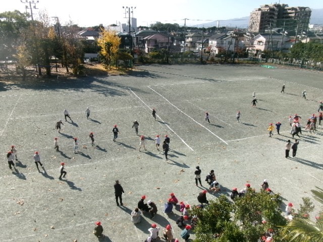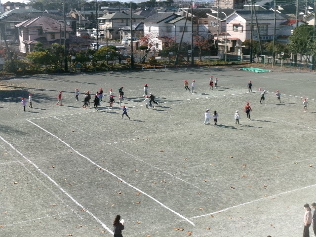 一度に全員が行うと混み合うので、ゲームをする班と応援する班に分かれて行いました。