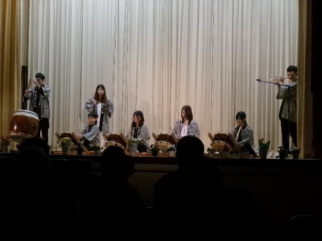 太鼓と笛、鉦(かね)の素敵な音色が体育館に響き渡りました。