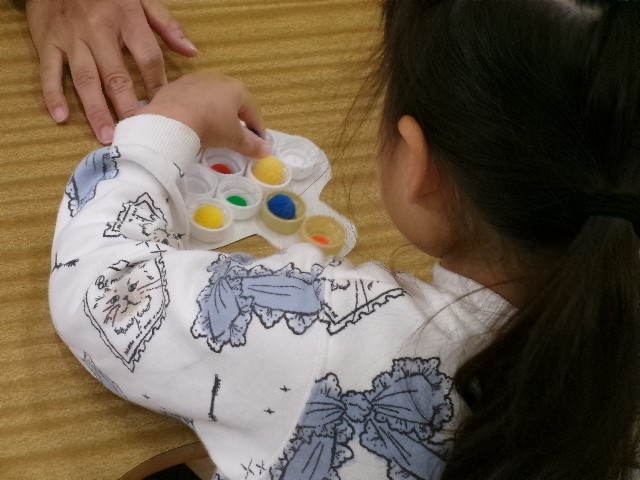 たくさんの大人に見られて戸惑い気味でしたが、自分自身で塗りたい色や塗り方を選択し、最後までやり遂げました。