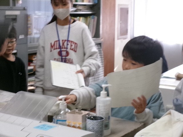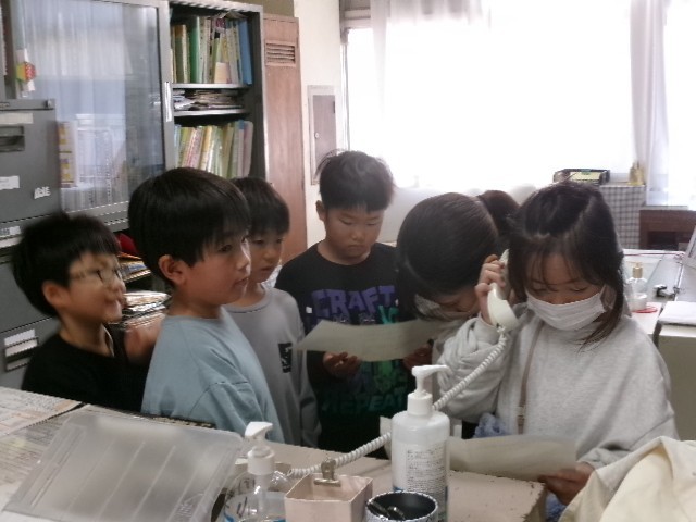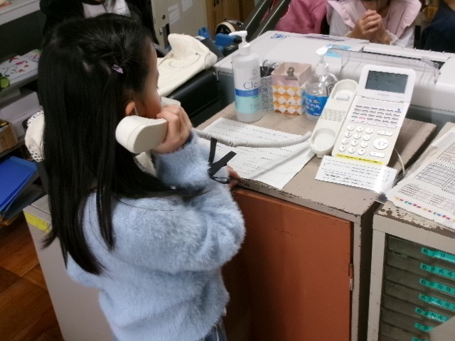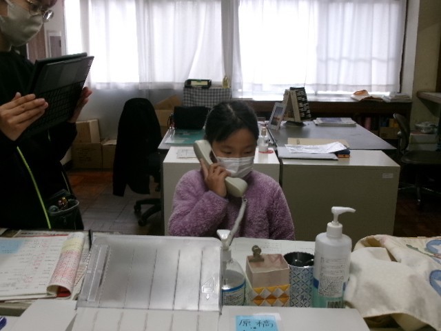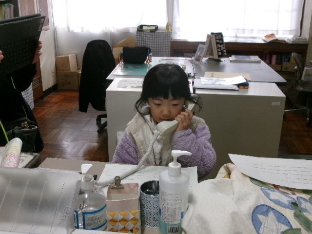 昨日1日(月)の昼休みは1・2組の子が、そして、今日2日(火)の昼休みは3組の子が、事務室から電話をかけて、直接お話をしました。