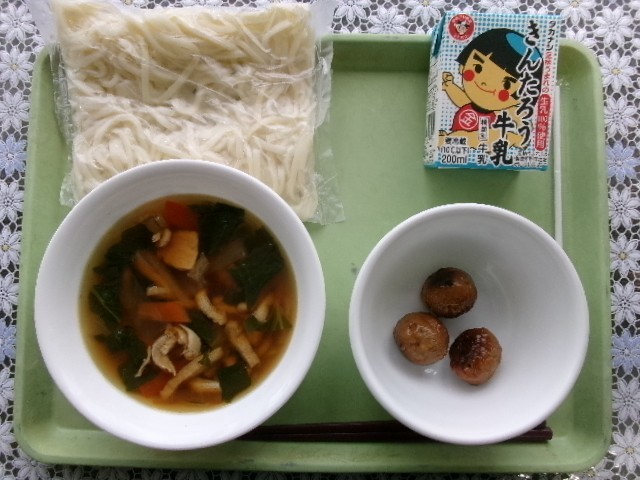 きつねうどん 肉団子甘酢あん 牛乳
