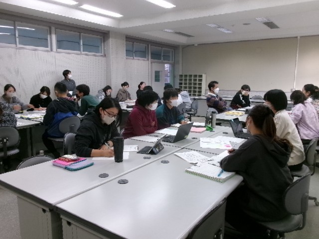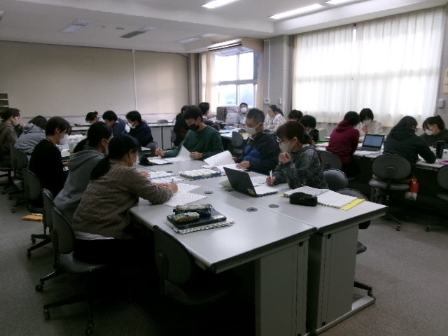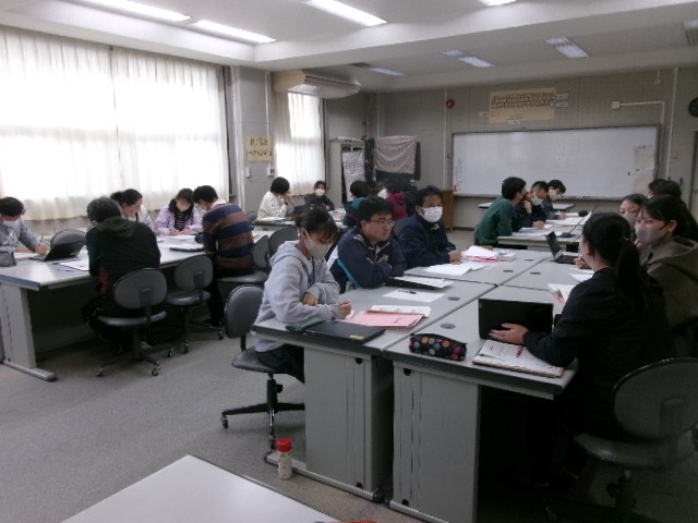 インフルエンザによる欠席者増加に伴い、2つのブロック研究(研究授業)が延期になりましたが、これまでの実践について、報告会を行いました。