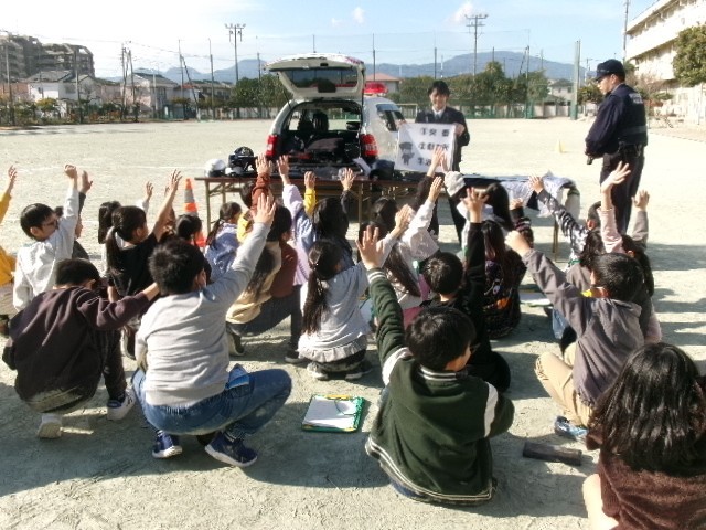 そこで、小田原警察署にお願いしたところ、交番と駐在所からそれぞれお一人ずつ、あわせてお二人の警察官が国府津小学校に来てくださいました。