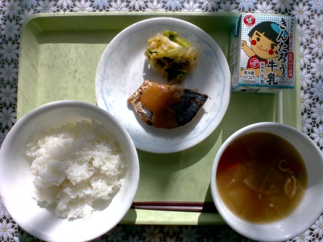 ご飯 鰆(さわら)の味噌だれかけ 青菜のごま炒め いももち汁 牛乳