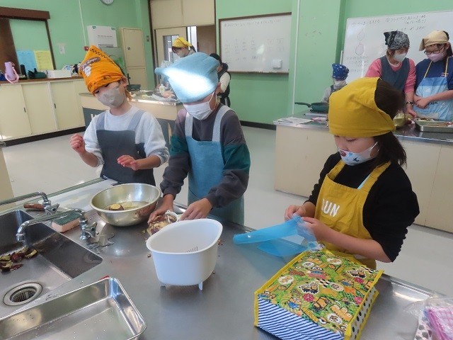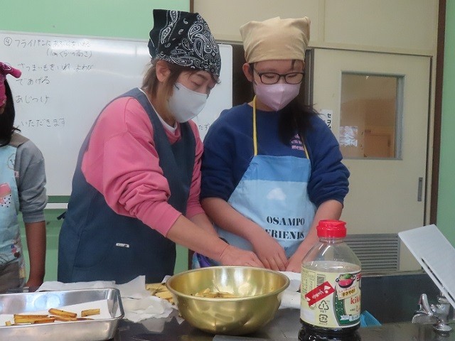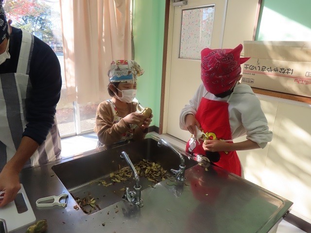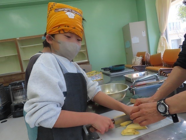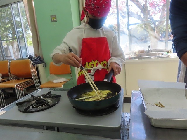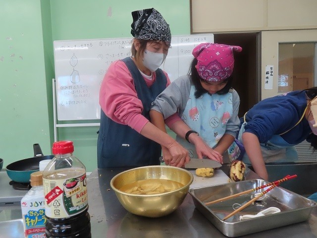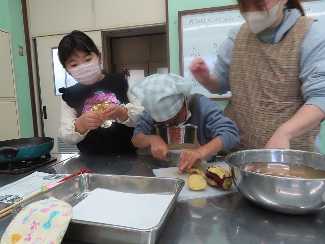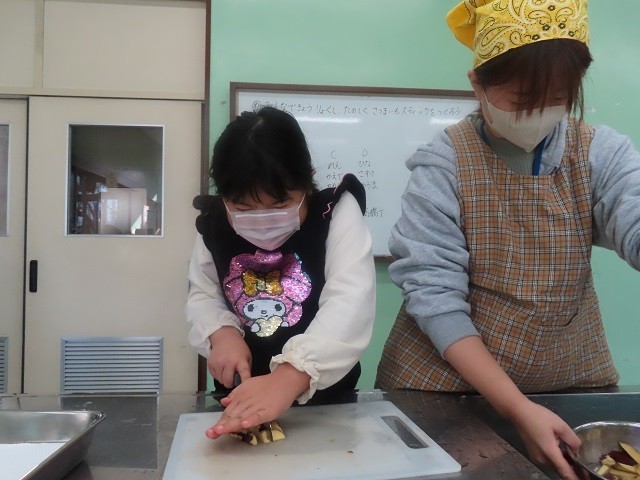 第2家庭科室では、1B組、2B組、3組の子たちが、サツマイモスティックを作りました。