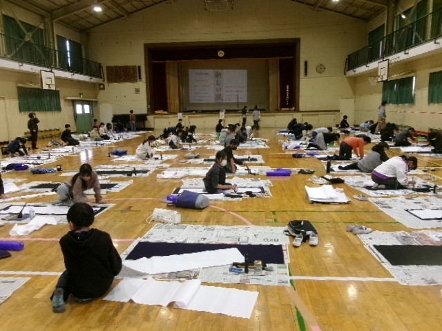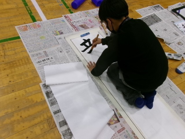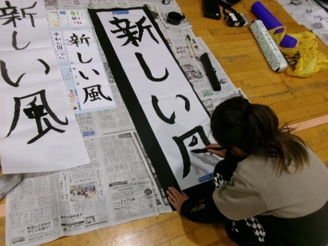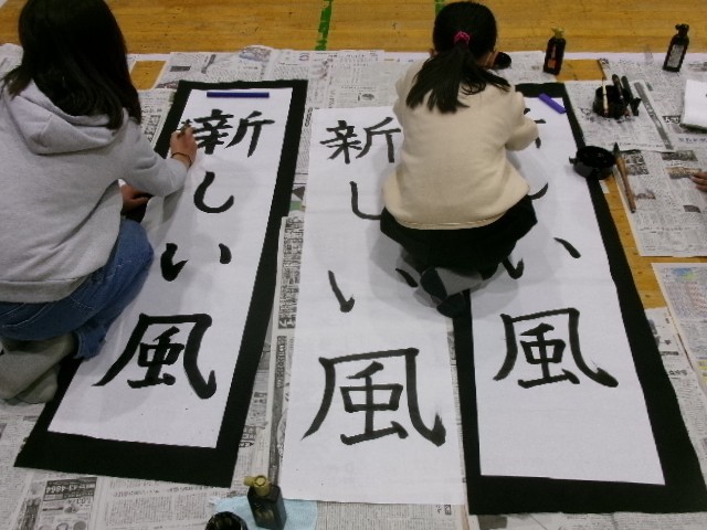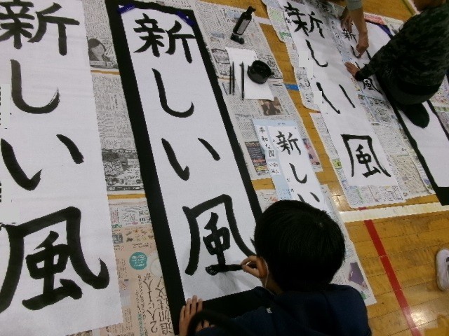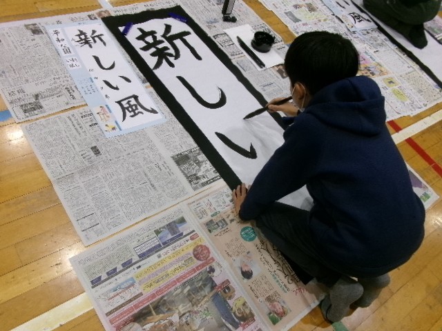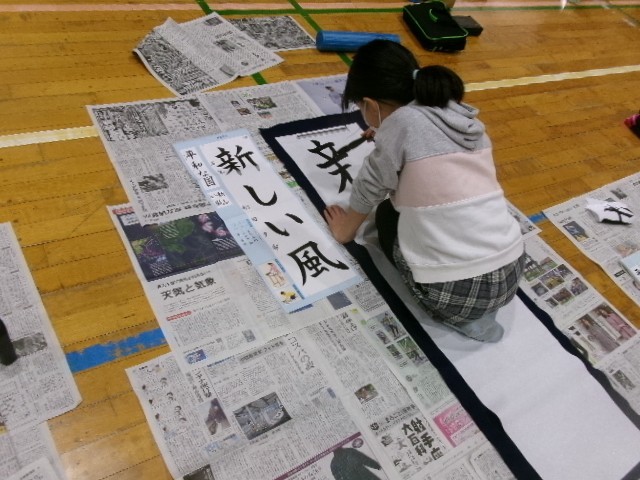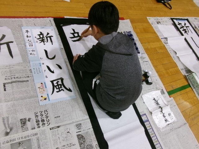 17日(水)5・6校時目…大縄大会の興奮もさめやまぬ中、5年生は書き初めの練習に取り組みました。