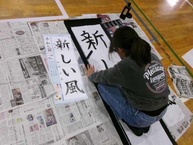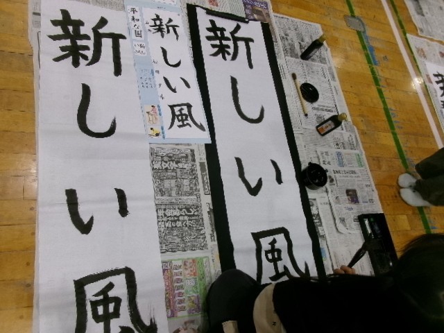 「しい」の平仮名は、「新」「風」の漢字より小さめに書くことも意識して…。