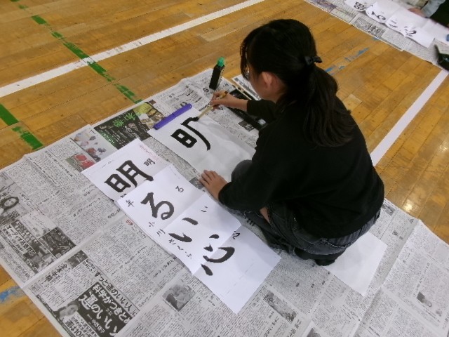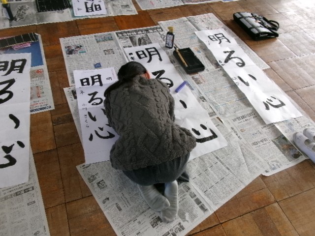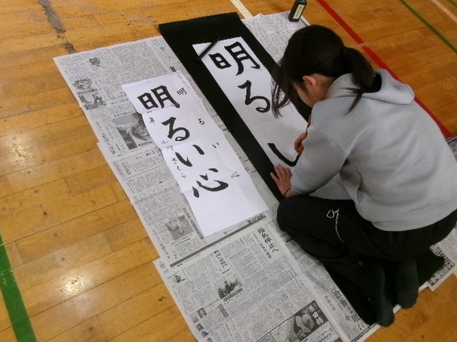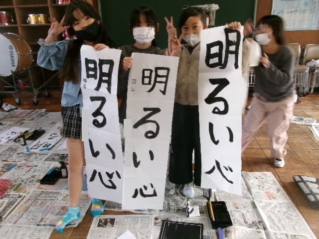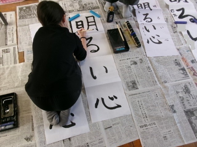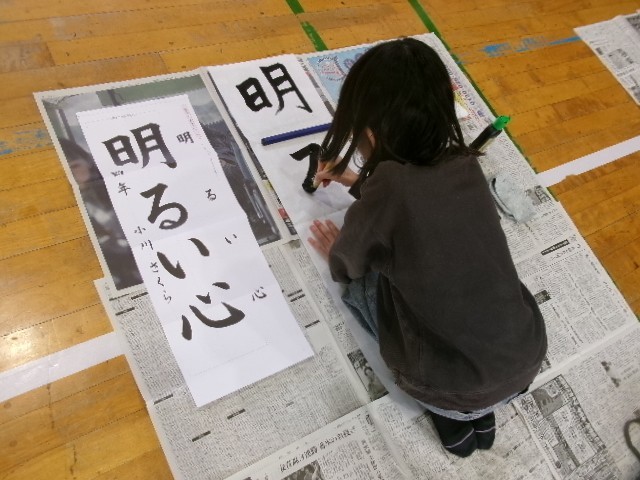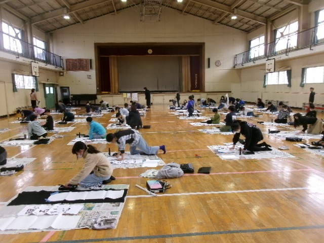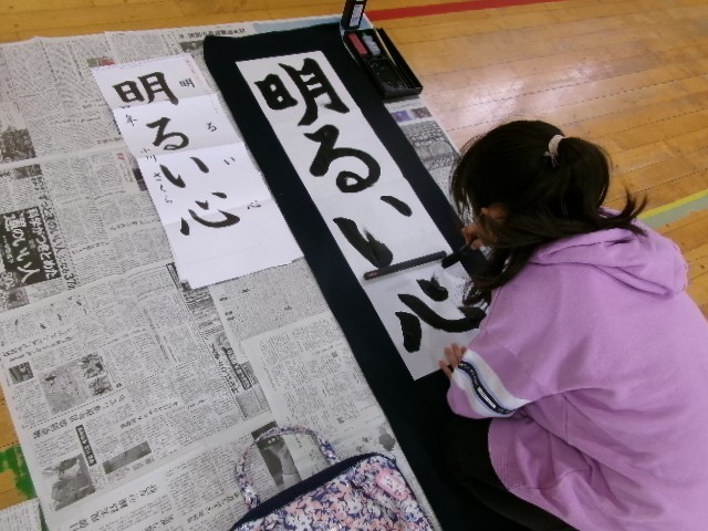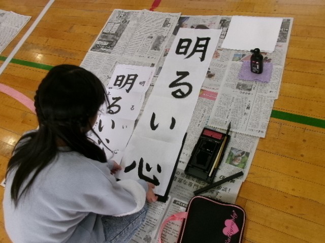 19日(金)、3校時目に4年生が書き初めの練習を行いました。