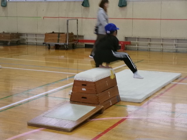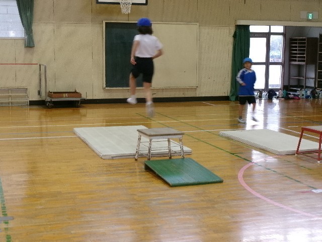 中には、開脚跳びを楽しむ子もいます。