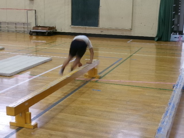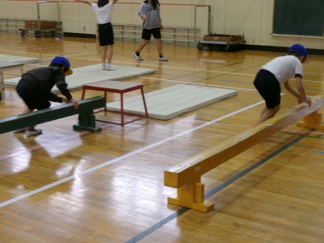 平均台を使って、左右に跳び越しながら進んでいる子もいました。