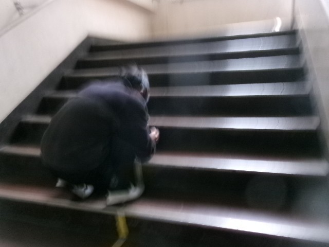 そして、階段に貼ってある左右の境目の黄色いテープの貼り替えもしました。
