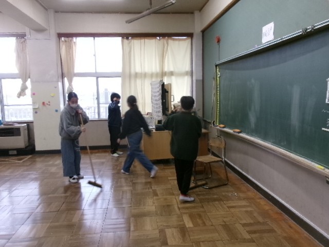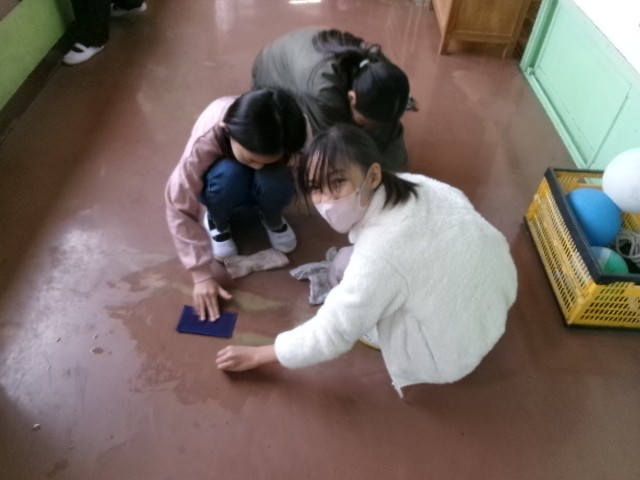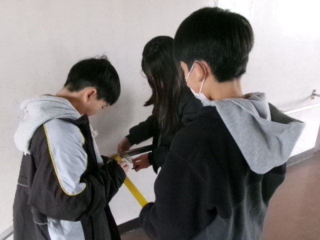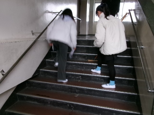 【5年】大掃除に加え、階段の左右仕切りのテープも貼り替え