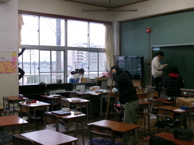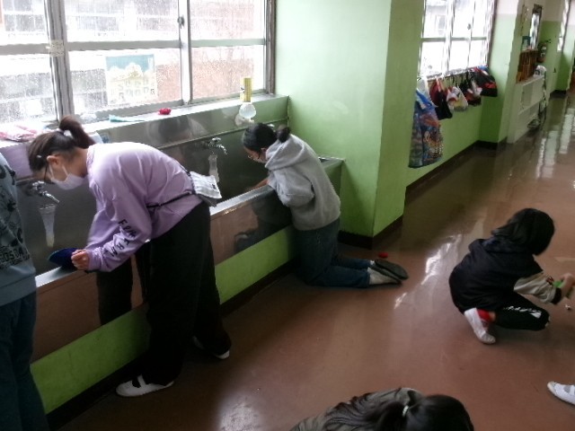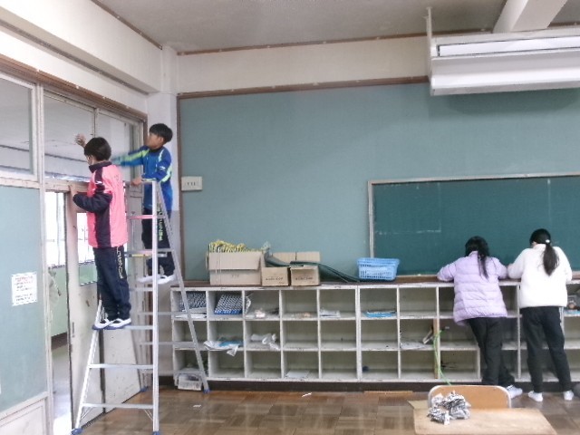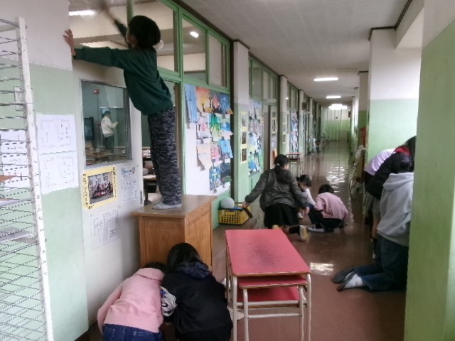 教室や靴箱に加え、ベランダの窓や教室の廊下側の高い窓も…。