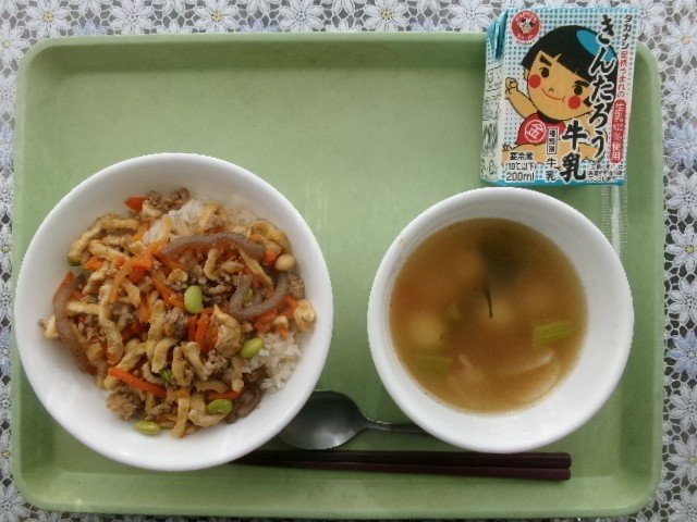 五目ご飯(さくらめし) 白玉雑煮 牛乳