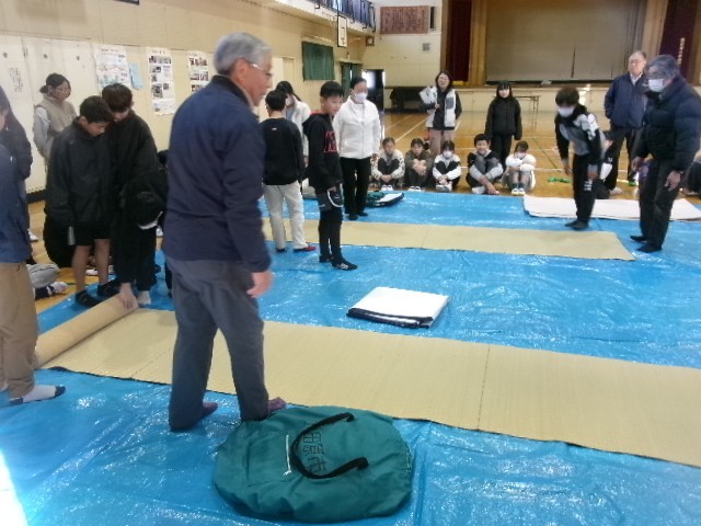 9日(金)第5校時、自治会長さんをはじめ地域の皆様のご協力のもと、5・6年生が地域防災訓練に取り組みました。
