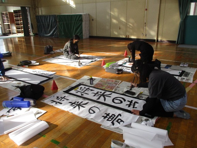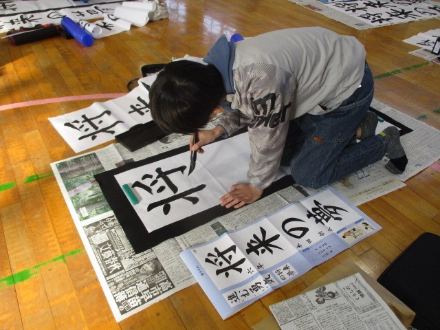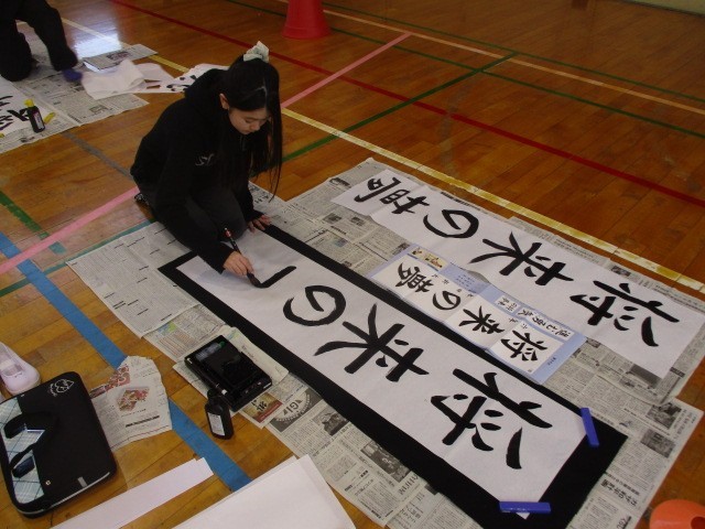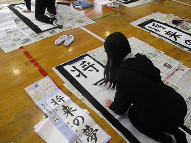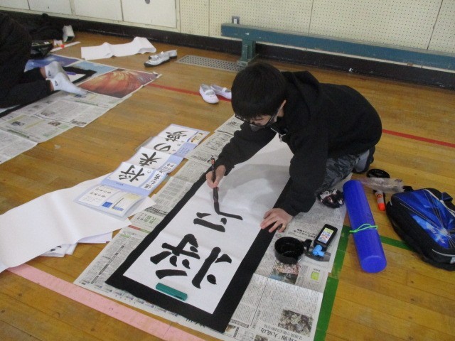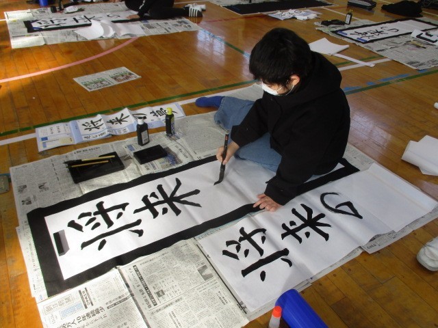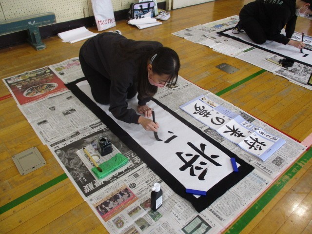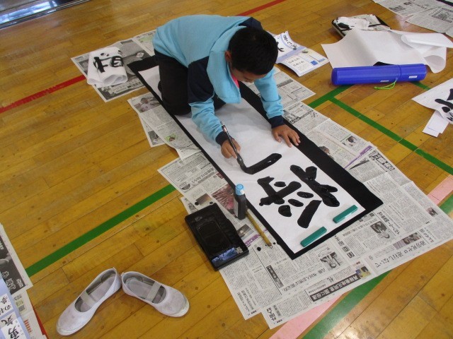13日(火)の第1・2校時目、6年生が書き初めに挑戦しました。