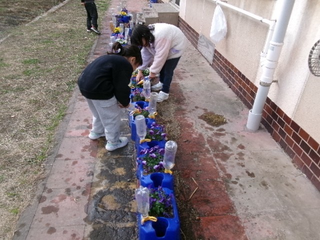 今日は、学級閉鎖でお休み中の子たちの植木鉢にも、隣のクラスの子たちが水やりをしてくれていました。