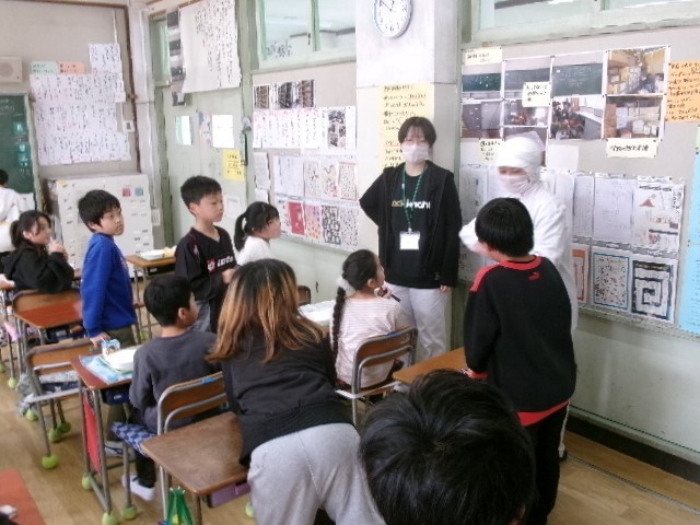 時間の関係で4年生までしか回れませんでしたが、それぞれの教室で、給食の感想を伝えたり、質問をしたり…。