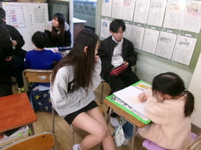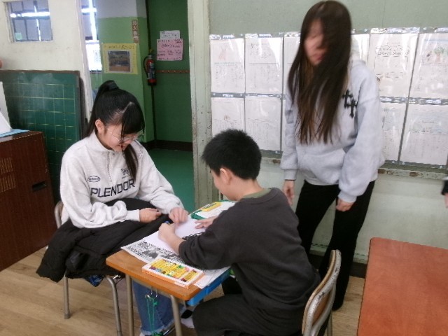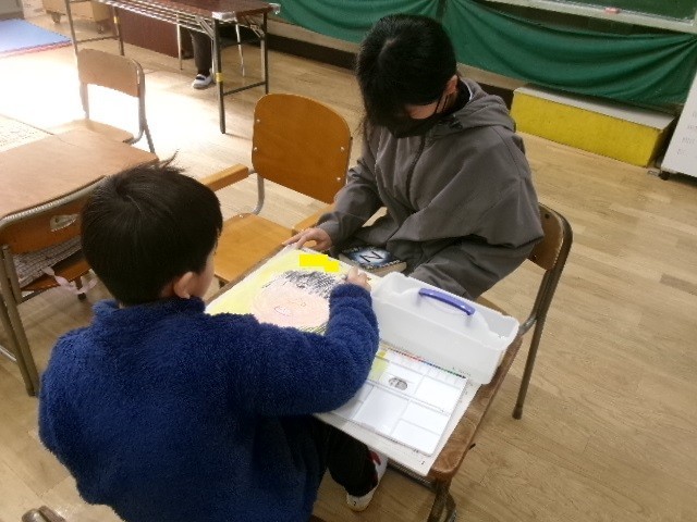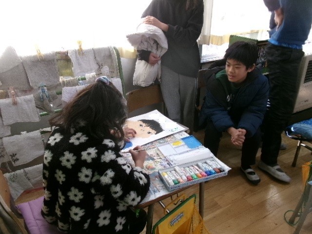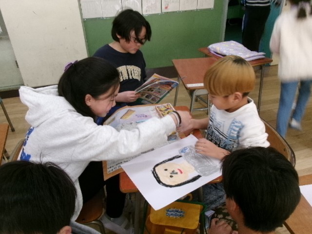 22日(木)の3・4校時目、たてわり班でお世話になった6年生の似顔絵を1年生が描きます。