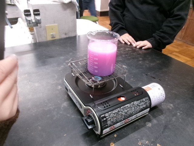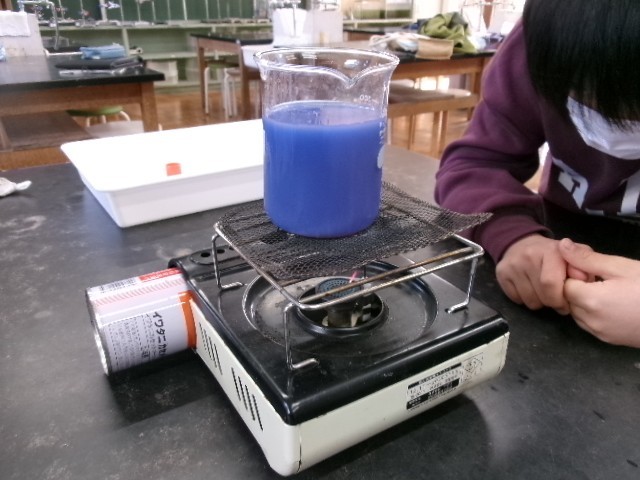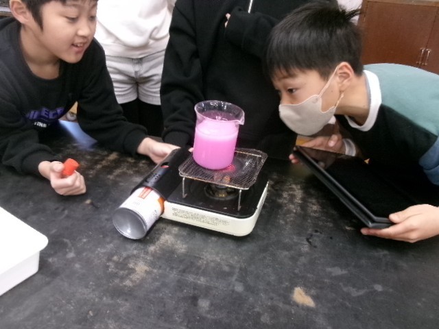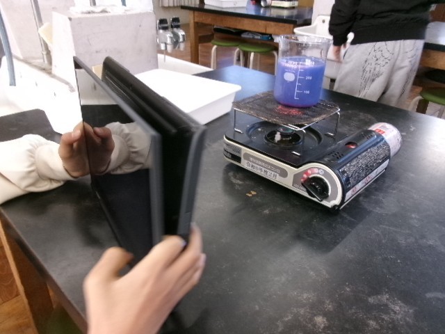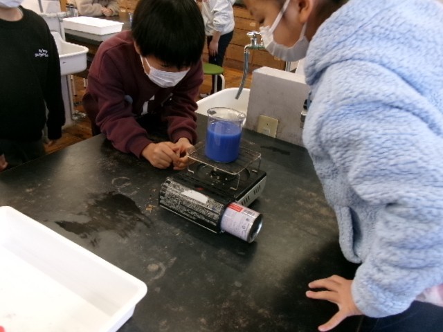 理科の時間、物の温まり方を調べています。