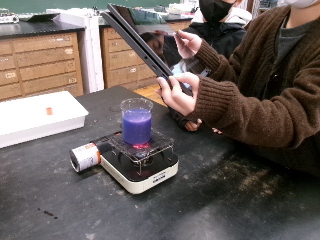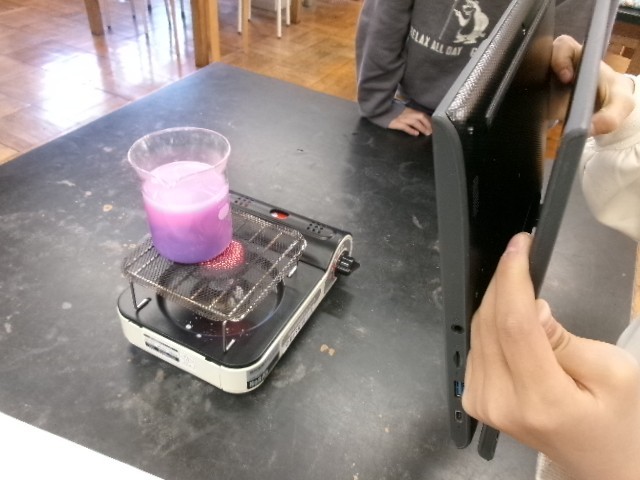温まっていく様子(色が変わっていく様子)をChromebookを使って撮影しました。