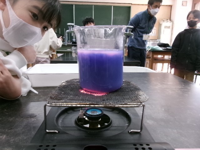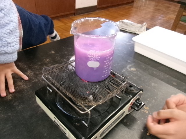 「サーモインク」といって、温まると色が変わる不思議な液体を水に入れて確かめます。