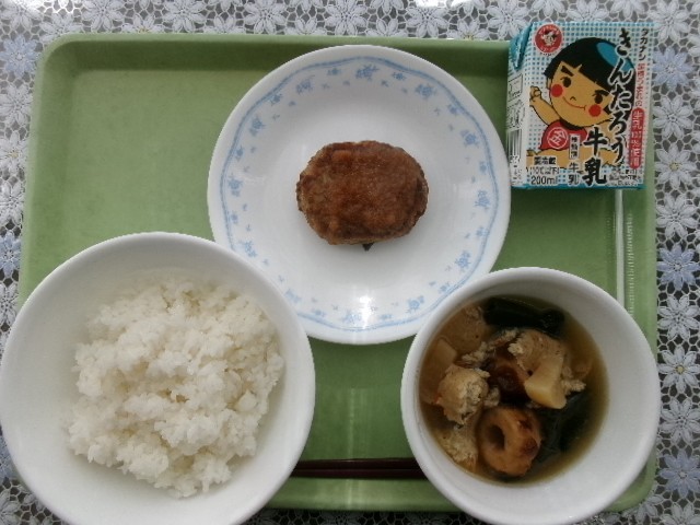 ご飯 ハンバーグ梅おろしソース おだわらっ子おでん 牛乳