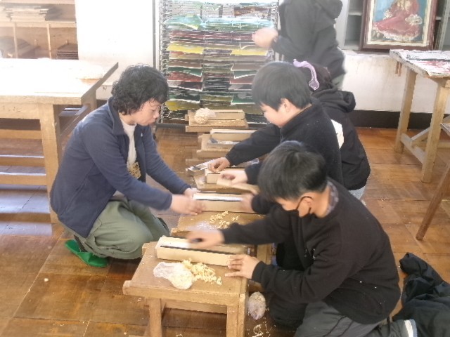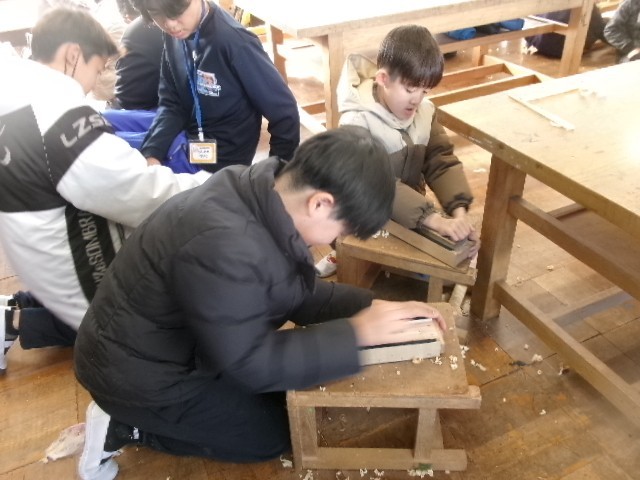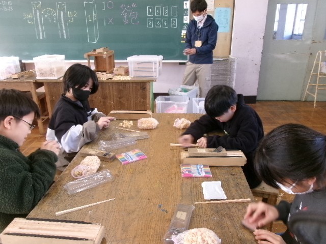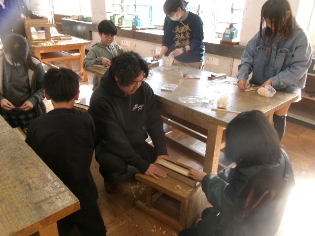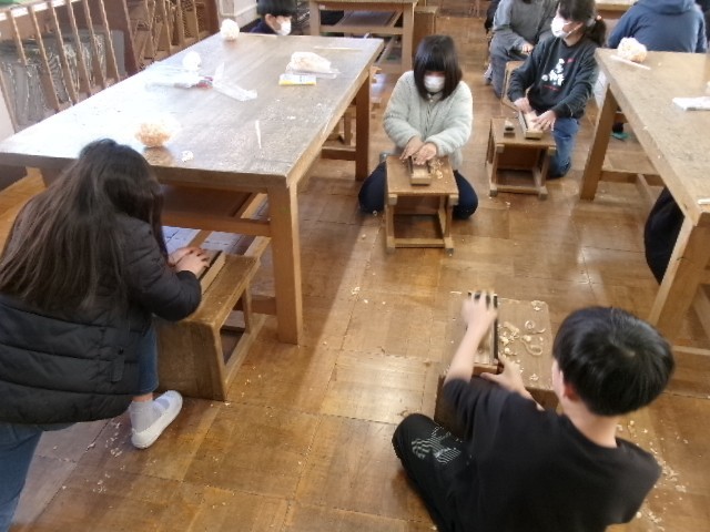 1・2校時目に1組、3・4校時目に2組、5・6校時目に3組が、工作室で実施。