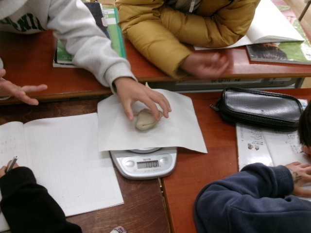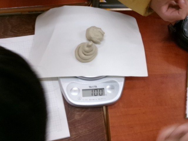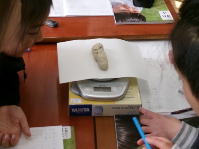 粘土を使って、形を変えると重さも変わるのか調べました。